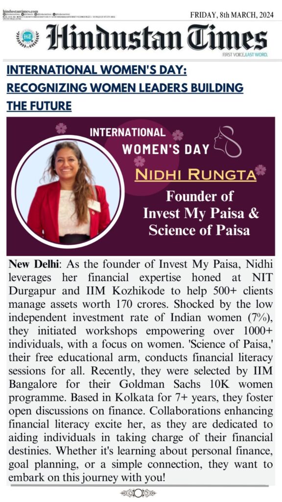 Featured In Hindustan Times by Invest My Paisa | Mar 19, 2024 | Press | 0 comments Submit a Comment Cancel replyYour email address will not be published. Required fields are marked *Comment * Name * Email * Website Save my name, email, and website in this browser for the next time I comment.